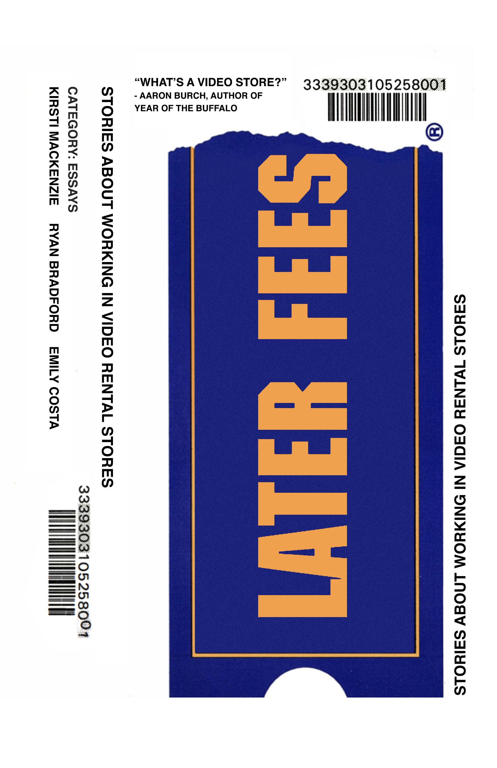 Love, heartbreak, nostalgia and physical media—Later Fees is a zine of nonfiction essays by authors Emily Costa, Kirsti MacKenzie and Ryan Bradford about working in the dead/dying industry of video rental stores.